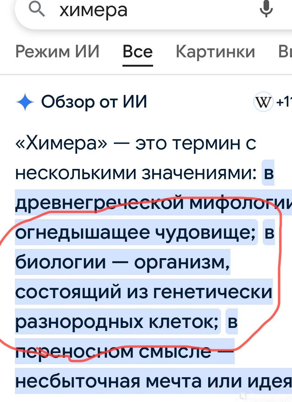 Химера это термин, обозначающий организм, состоящий из двух различных организмов.