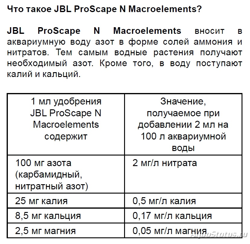 Мы опять имеем разночтение. Что имеет в виду производитель при такой форме подачи информации? Я понимаю, что он указывает концентрации именно нитрата 10,75 г/л, и аммиака 1 г/л. Вы говорите об азоте в форме нитрата и азоте в форме аммиака? Ок. NO3 имеем 62, NH4 имеем 18. Для 10,75 азота в форме нитрата должны иметь около 40 собственно нитрата, для 1 азота в форме аммиака должны иметь около 1,3 аммиака. Т.е. прим 3%. Ну, в этом случае тогда опять вопросы к производителю. Первый- а нормально писать состав слабо? Второй- в составе какого соединения входит аминогруппа NH2? И третий. При таких "следовых" концентрациях аммиака, нафига этот цирк вообще? "Новая улучшенная формула"? Маркетинг? Он же ж должен понимать, что его аммиак отследить тестами нереально. А, стало быть, его появление в аквариуме приведет к тому же, к чему приводит появление в аквариуме естественного аммиака- к немедленному окислению его при азотном цикле.