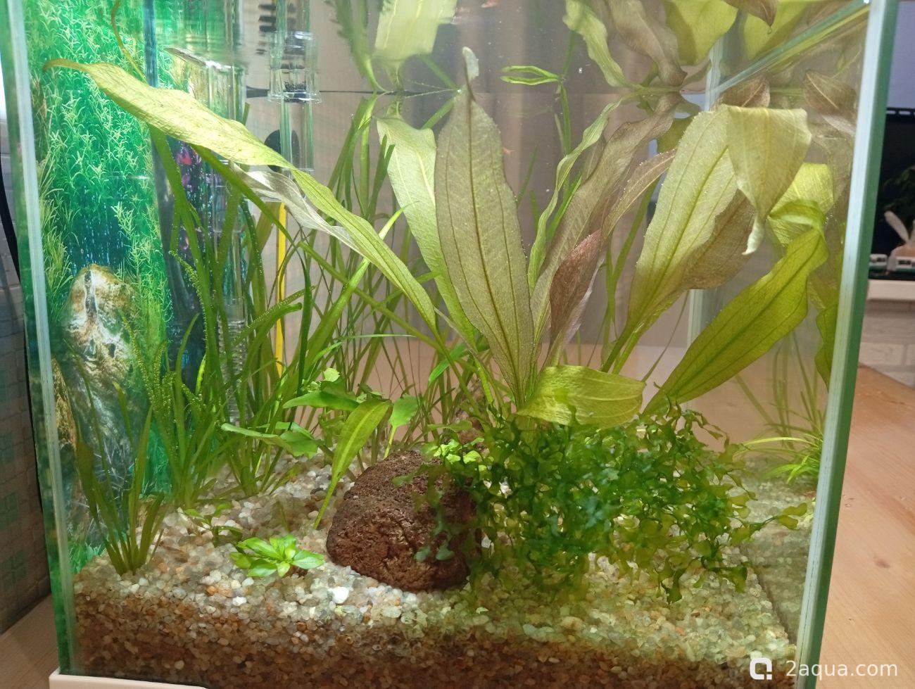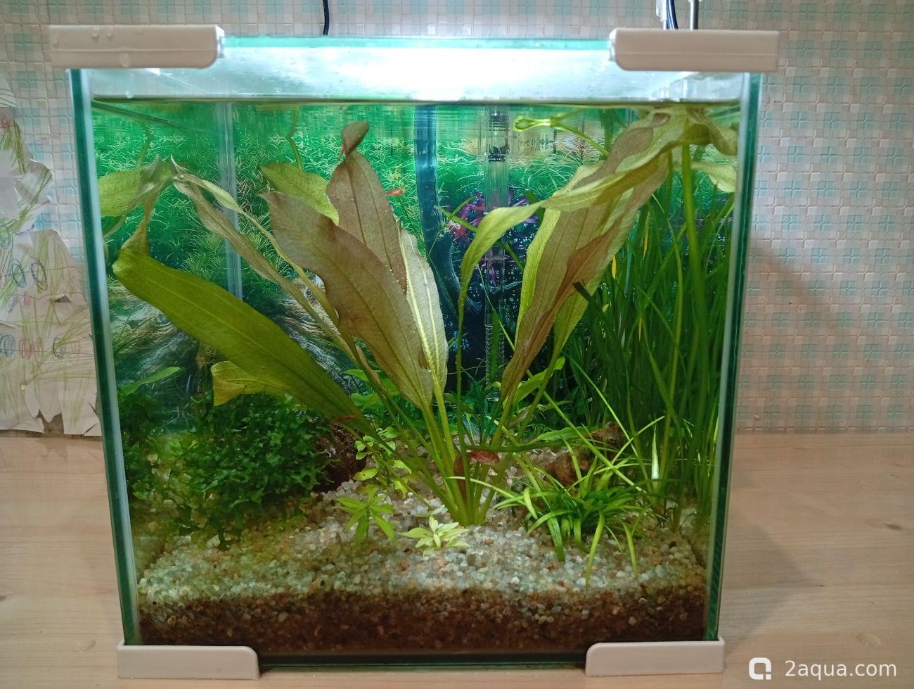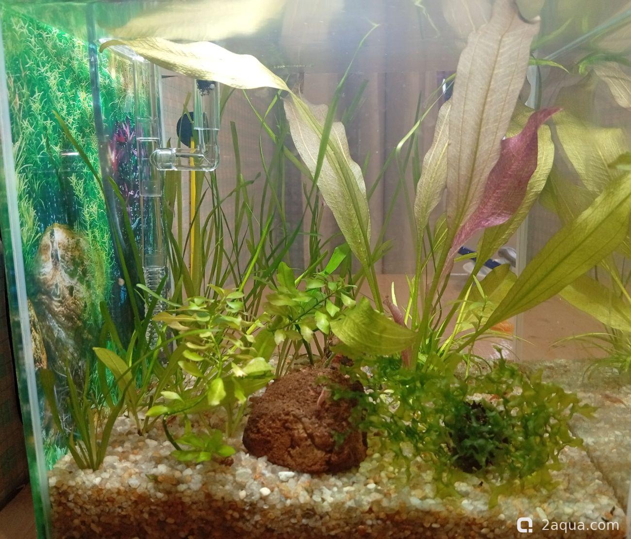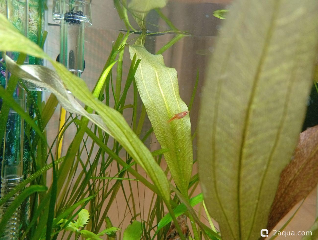 креветок не трогают? я вот думаю кого бы купить вместо тертра аманд, у меня они уже год сидят в зарослях, видно только когда бросаю корм и отхожу метра на 1,5-2 ) потомо пять в кустах сидят дрожат, была стая 15 штук, это не помогало если одна в кустах, то все туда забиваются, сейчас штук 7-8 осталось, тольок парочка не пугливые, просто не могу с ними )) может если бригитт попробую найти )Ленчик Осталось тут всего 2 микрорасборы бригитты, как только появится возможность - докуплю ещё. Очень мне понравились эти крошечные спокойные рыбки, для маленького кубика самое то