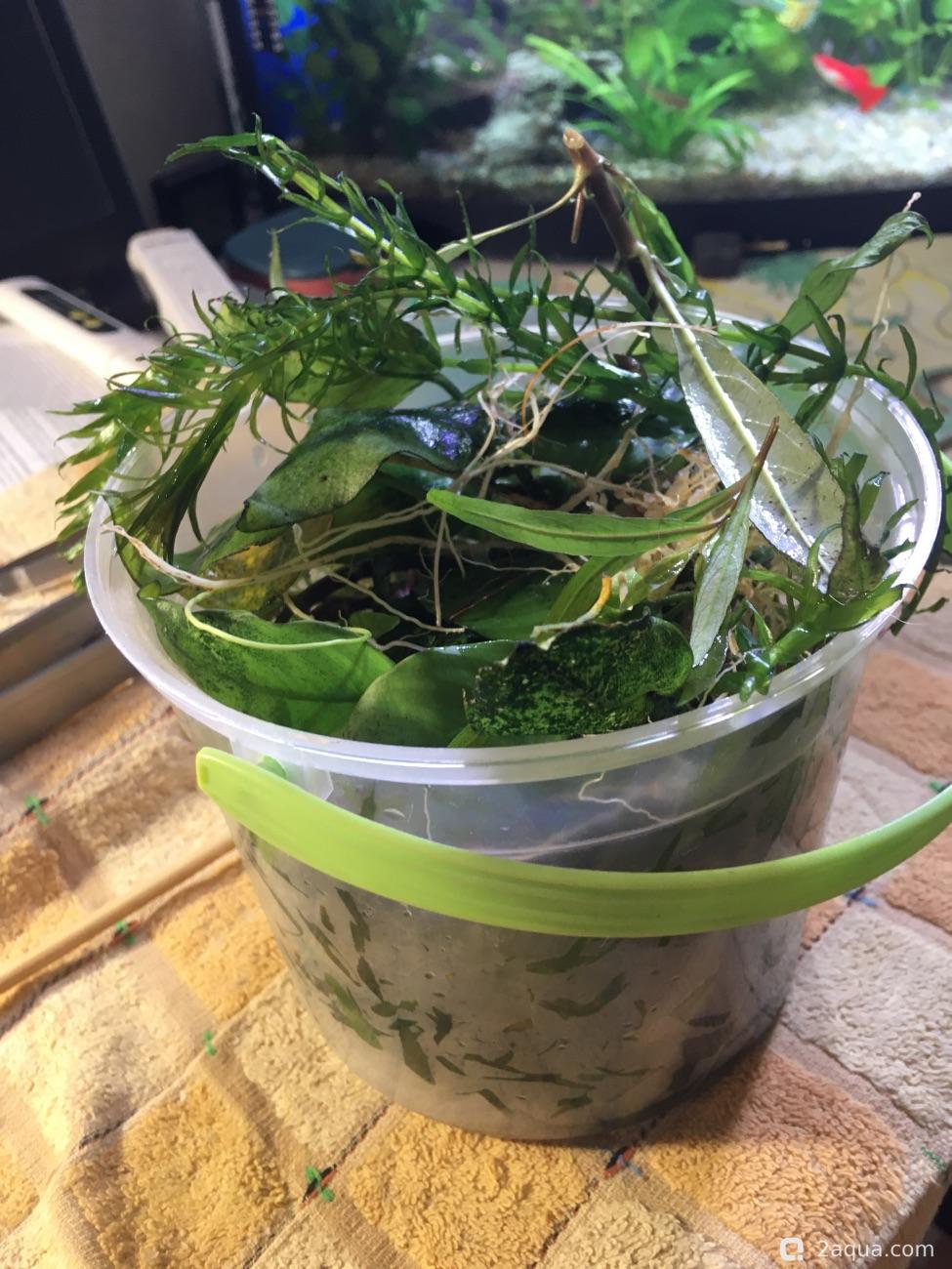 Навёл немного порядок. Укоротил гигрофилу, которая доросла до поверхности. И убрал совсем элодею, т.к. если садить ее в грунт, то та часть, которая в грунте, у меня подгнивает и даёт ошмётки «грязи», да и надоела :) От анубиаса, который занимал весь центр, оставил два свежих ростка - пусть снова ползёт из глубины к лобовому стеклу.