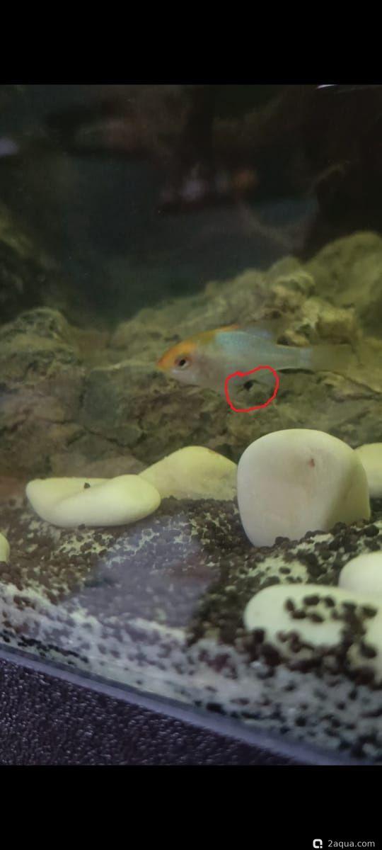 Доброго времени суток! Подскажите, пожалуйста, что это такое может быть на рыбке? Что-то прилипло или патология?