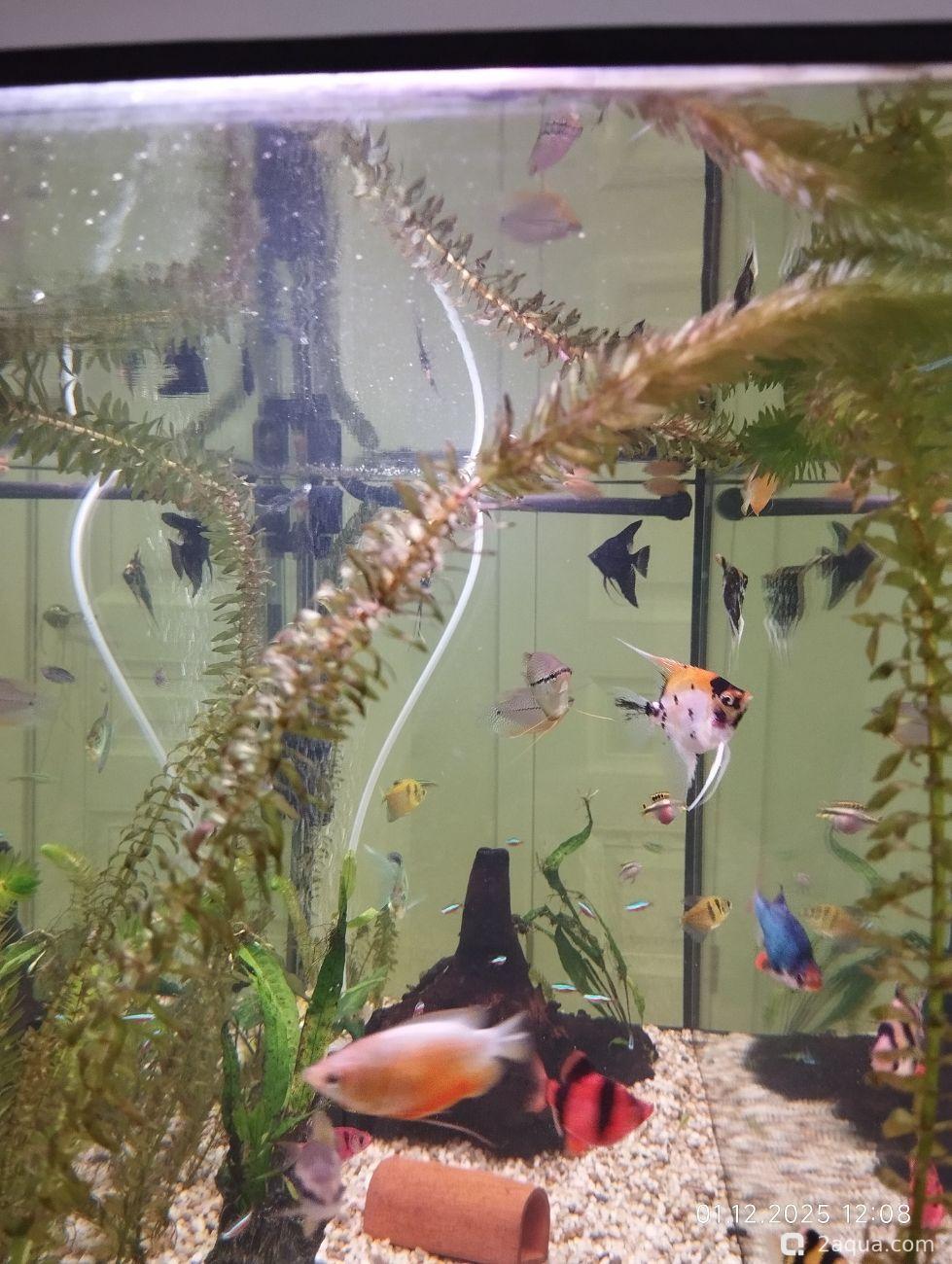 Обитатели аквариума (растения, рыбки и прочее): элодея - было много, тайландский папоротник - 1шт. скалярии -6, гурами -7, пульхер -4, коридорасы джули и панда - по 4, анциструс -4, тернеция -8, суматранский барбус -5, неоны -15, данио -8, сиамский водорослеед -2, ниритины -2
