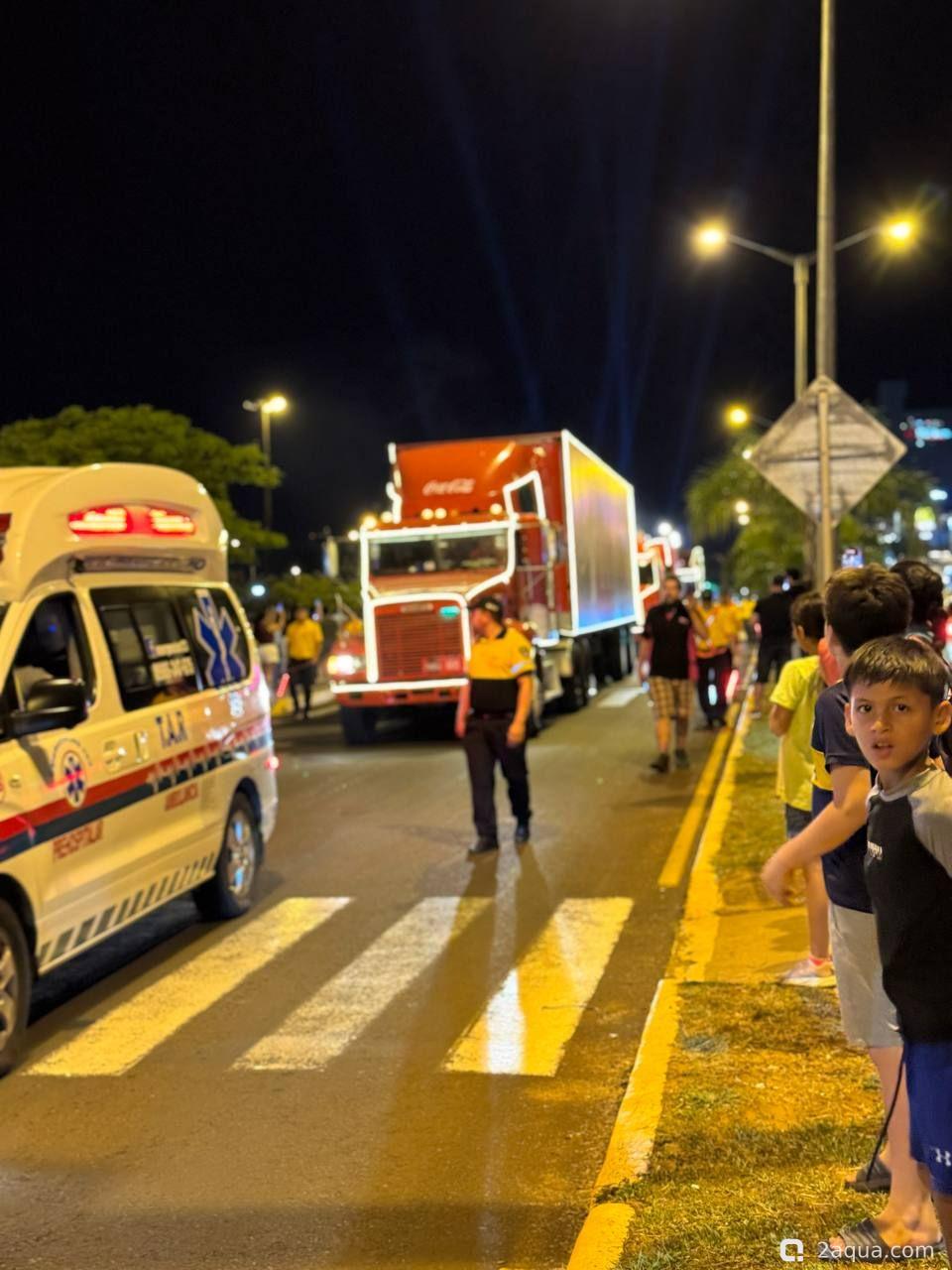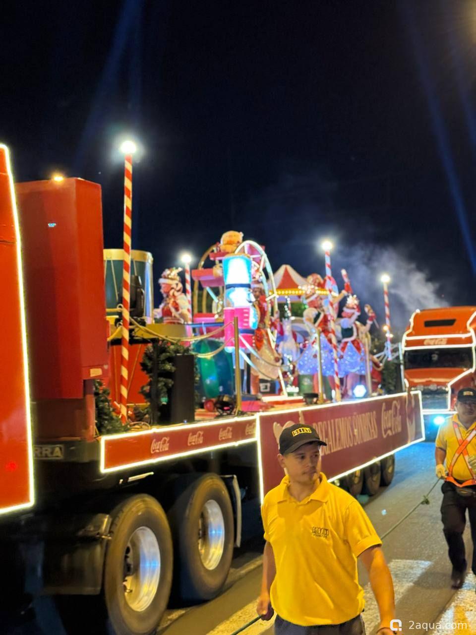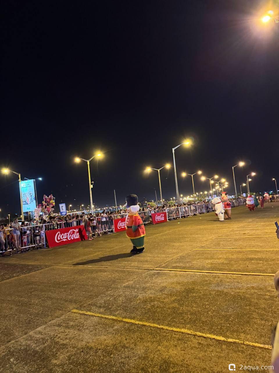Раз в год в начале декабря в Парагвай приезжают фуры от Кока-Кола. Примерно как в той известной всем рекламе. Только снега нет и грузовиков не так много. :-) В прошлом году их было 10, в этом 4. От чего зависит количество грузовиков мы пока не поняли. Выглядит это действо красиво и весело, народу нравится. Грузовики наматывают несколько кругов по набережной, потом уезжают в Аргентину. Сегодня с грузовиков стреляли пеной, жене с дочкой удалось быть запененными. Увы, запечатлеть это на фото было некому. :hi_hi_hi: И не могу не отметить тот факт, что Cola на парагвайском сленге означает простое русское слово "жопа" ;;-)))