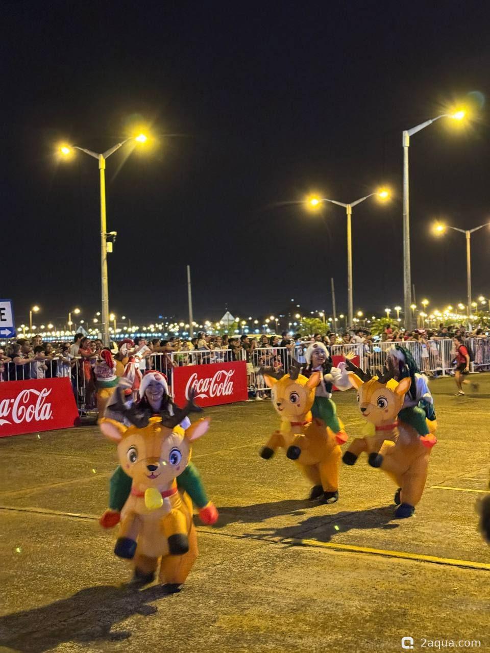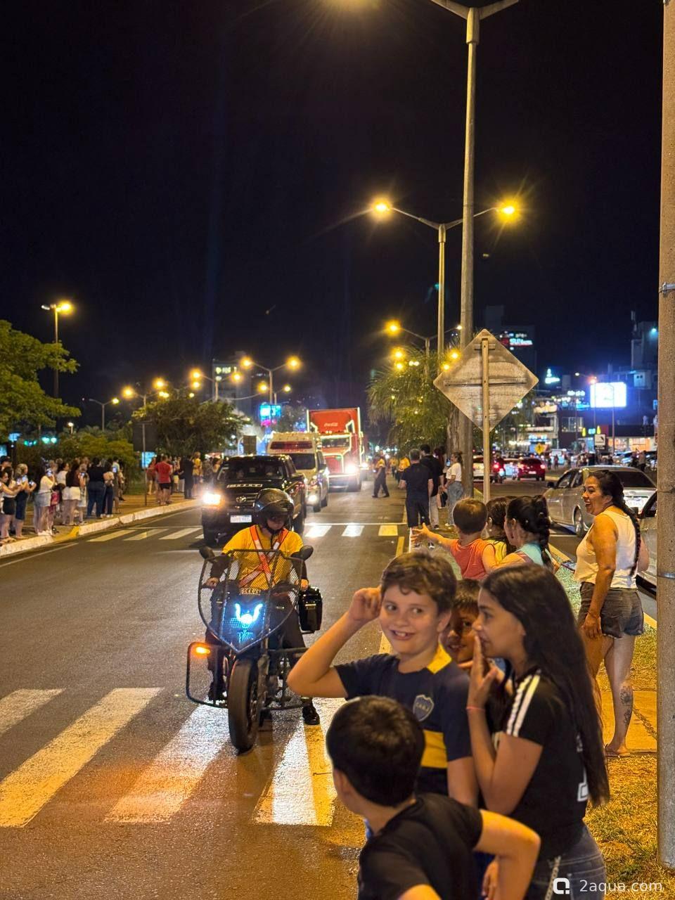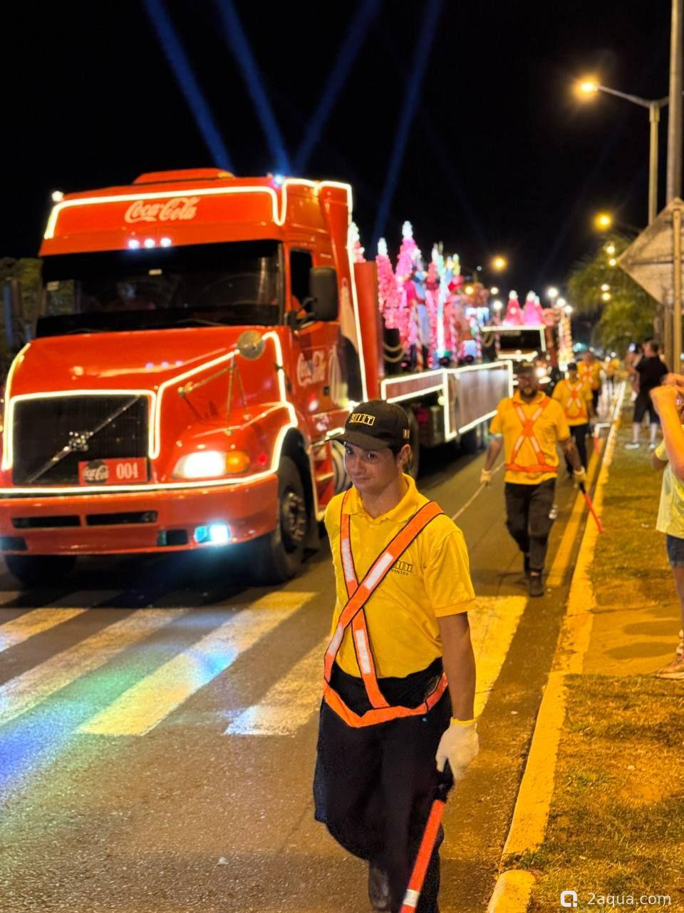 Раз в год в начале декабря в Парагвай приезжают фуры от Кока-Кола. Примерно как в той известной всем рекламе. Только снега нет и грузовиков не так много. :-) В прошлом году их было 10, в этом 4. От чего зависит количество грузовиков мы пока не поняли. Выглядит это действо красиво и весело, народу нравится. Грузовики наматывают несколько кругов по набережной, потом уезжают в Аргентину. Сегодня с грузовиков стреляли пеной, жене с дочкой удалось быть запененными. Увы, запечатлеть это на фото было некому. :hi_hi_hi: И не могу не отметить тот факт, что Cola на парагвайском сленге означает простое русское слово "жопа" ;;-)))