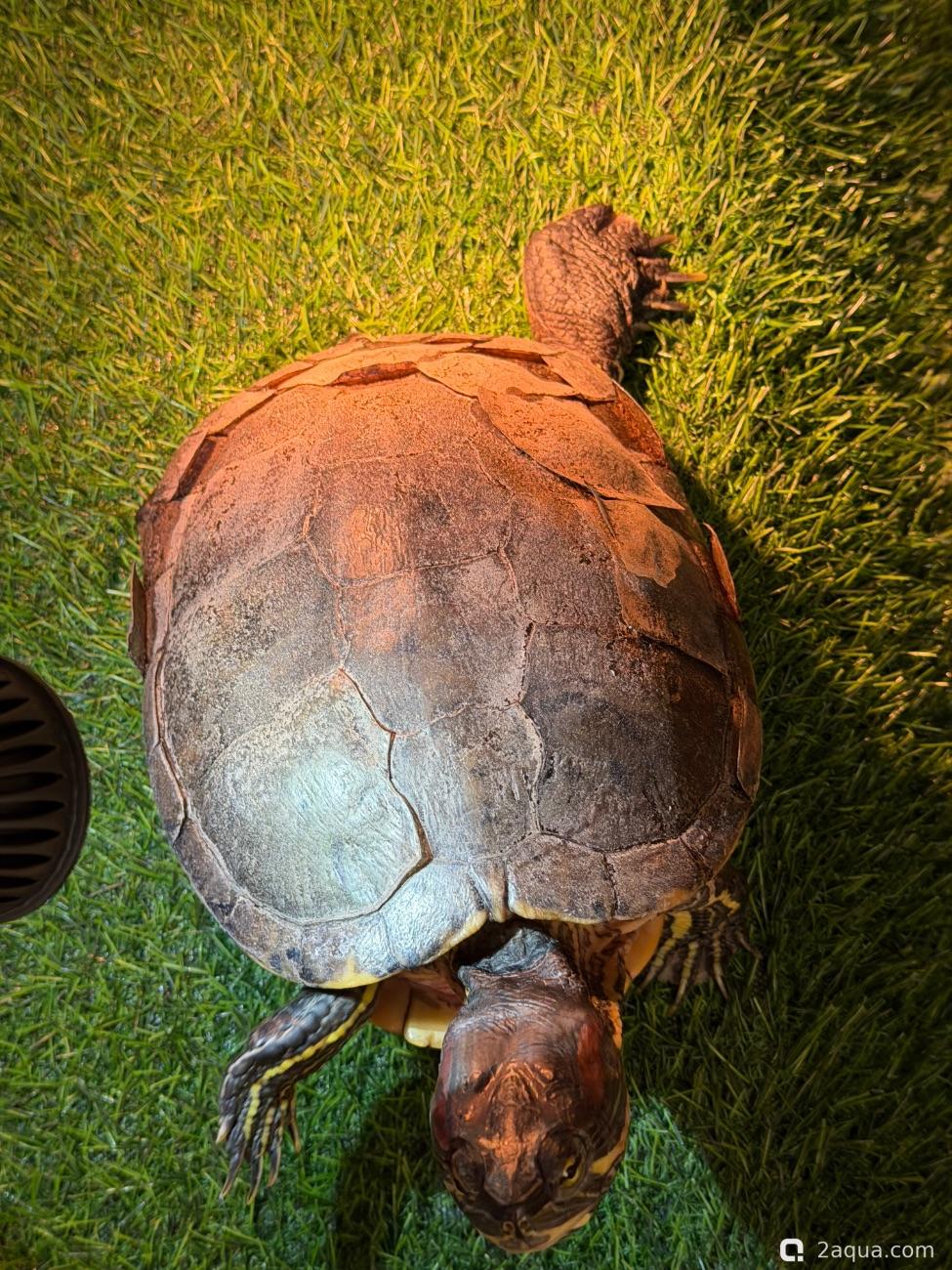 Панцирь облазит красноухая черепаха