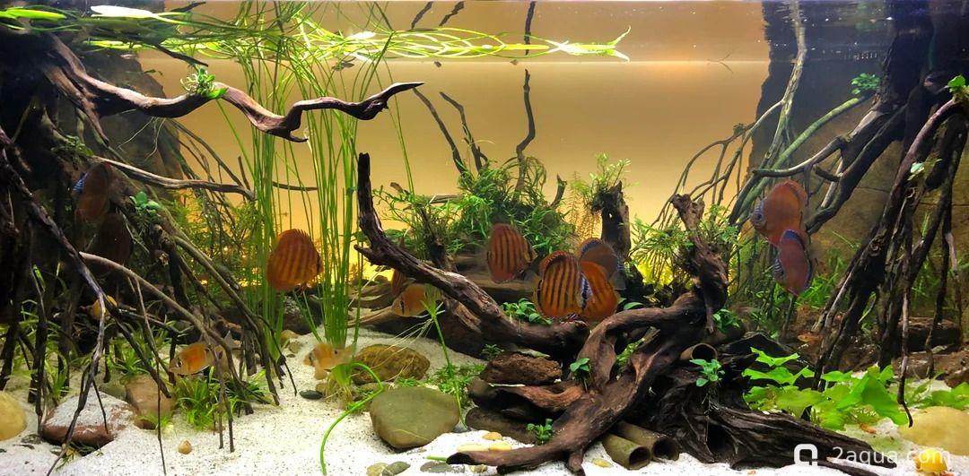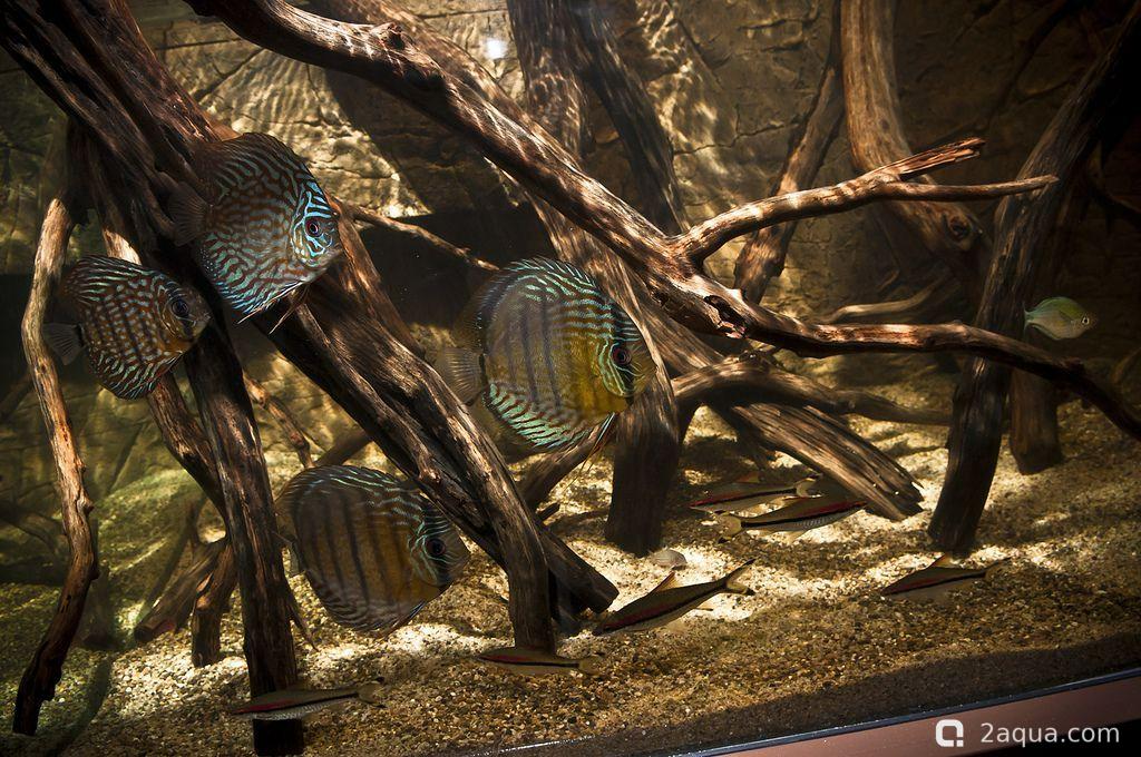 Основа правильного дизайна для дискусов - имитация затопленных деревьев Амазонии. Дискусы пугливы, и наличие ветвей, за которыми можно скрыться, жизненно важно для их психологического комфорта.